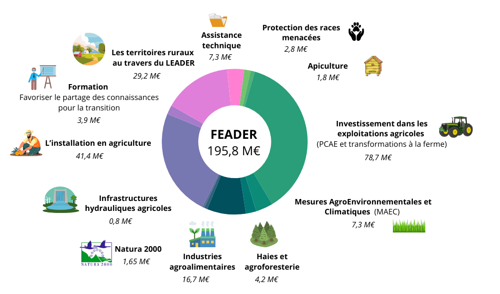 - 195,8 millions d'euros pour le fonds européen agricole pour le développement rural (FEADER)